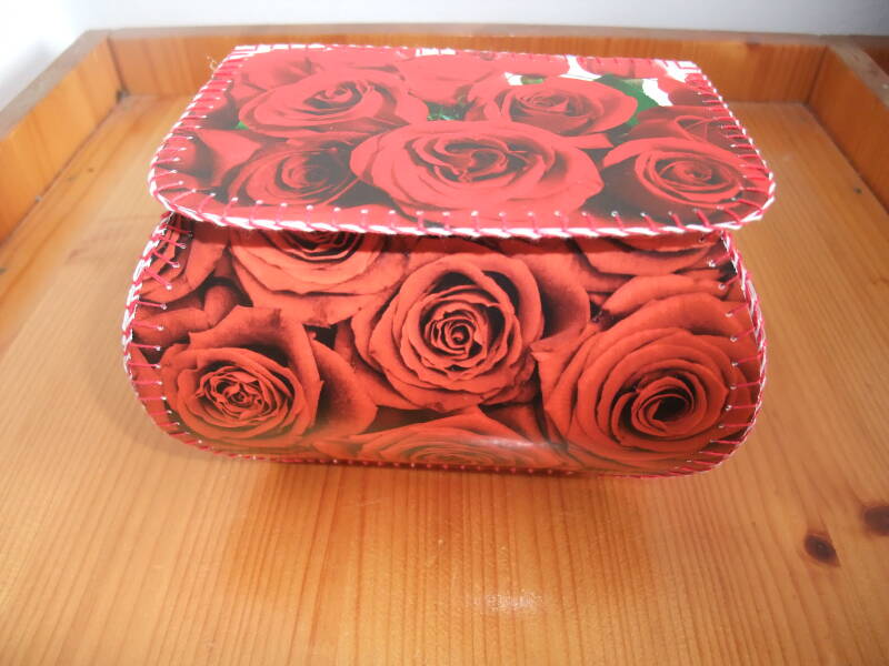 Doosjes gemaakt van 42 ansichtkaarten ook nog vele andere in dit grote model.Prijs: € 5,00.